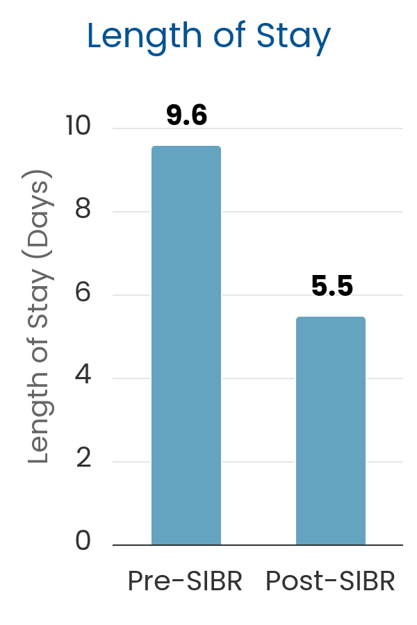 Implentation of SIBR rounds on the ortho-trauma unit significantly reduced the average length of stay (43% reduction in length of stay), enabling a corresponding increase in the number of patients treated each month (50 extra patients per month).